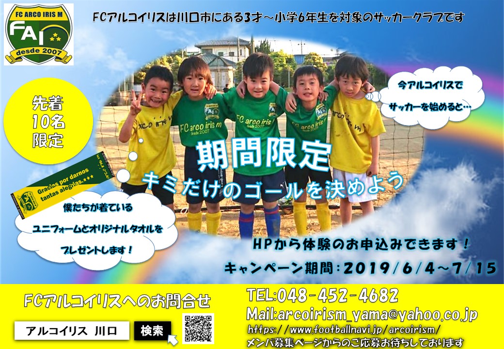 いつもFCアルコイリスの活動にご理解とご協力をいただき、誠にありがとうございます。