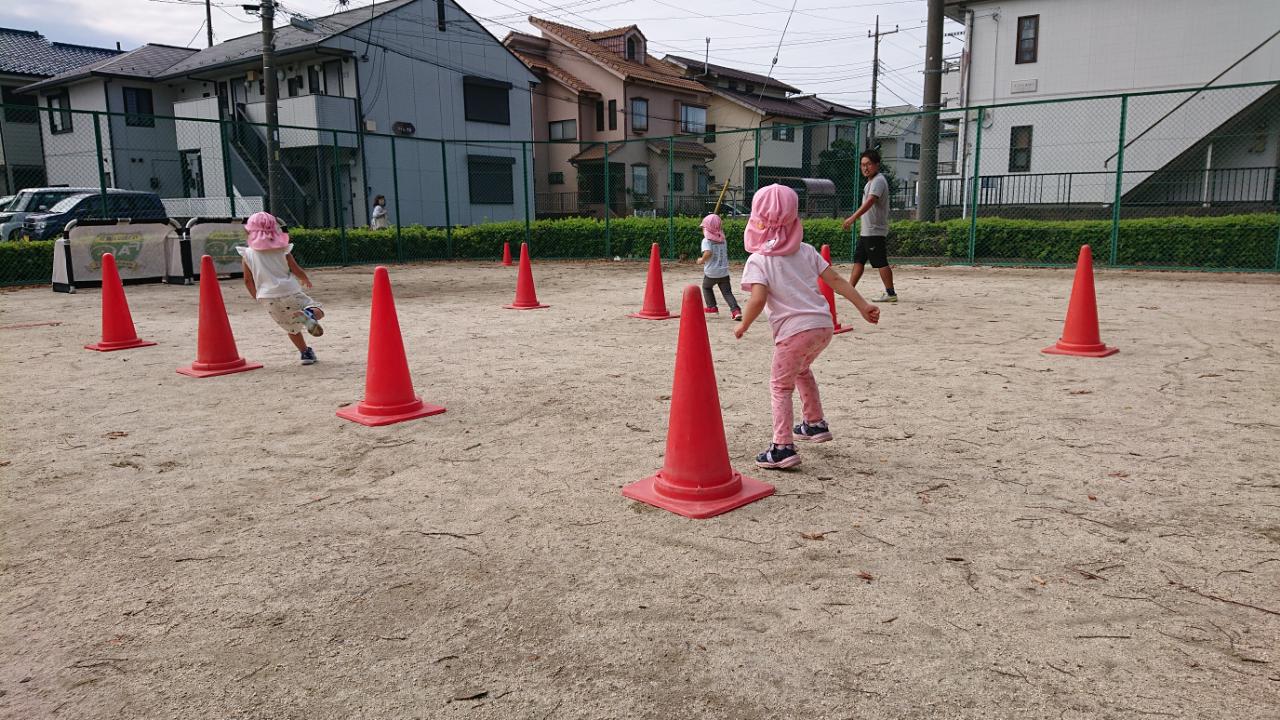今日はドリブルした後に帰りはコーンをジグザグで自分の場所に戻りました。