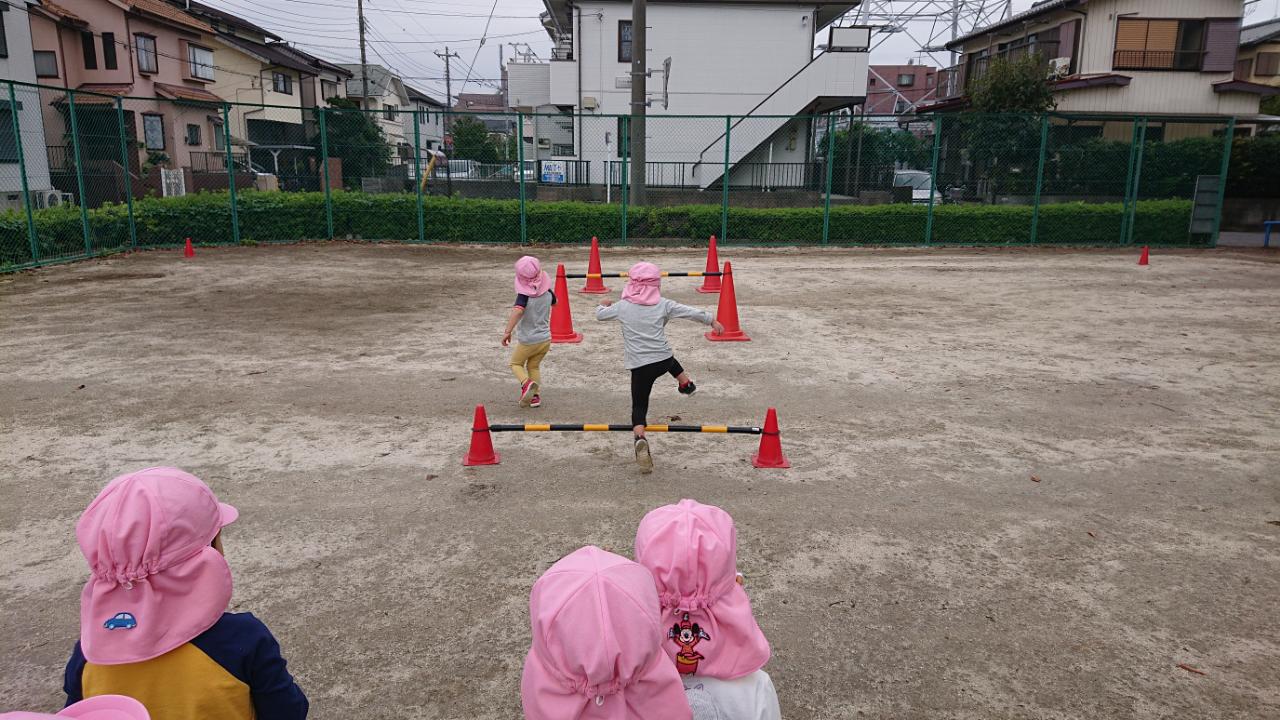 準備体操をした後にジャンプしたり、くぐったりする競争を行いました。