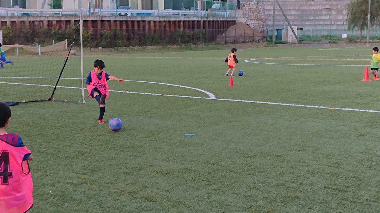 その後に守備を付けて突破の練習、突破からシュートを決める練習を行い、人ではなく空いているスペースに仕掛けて、相手が来たら逆を突くことをイメージしながら取り組みました!(^^)!