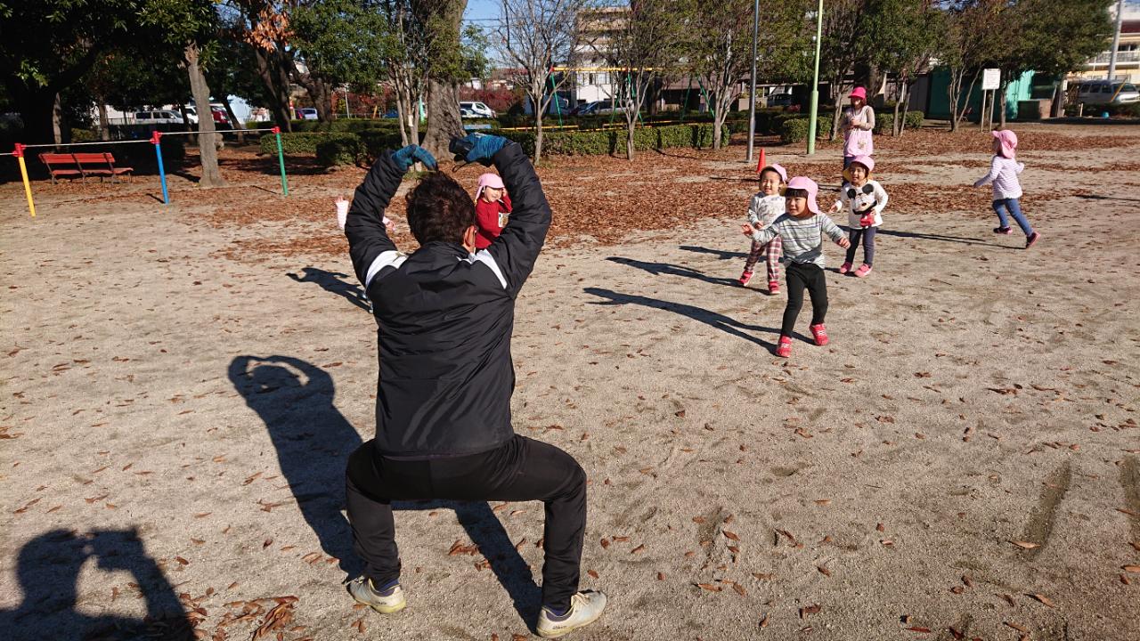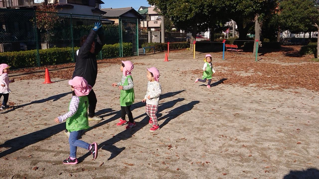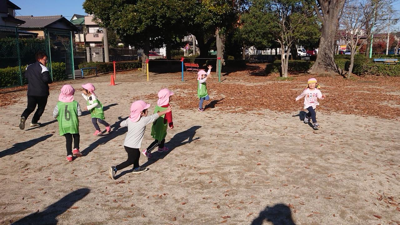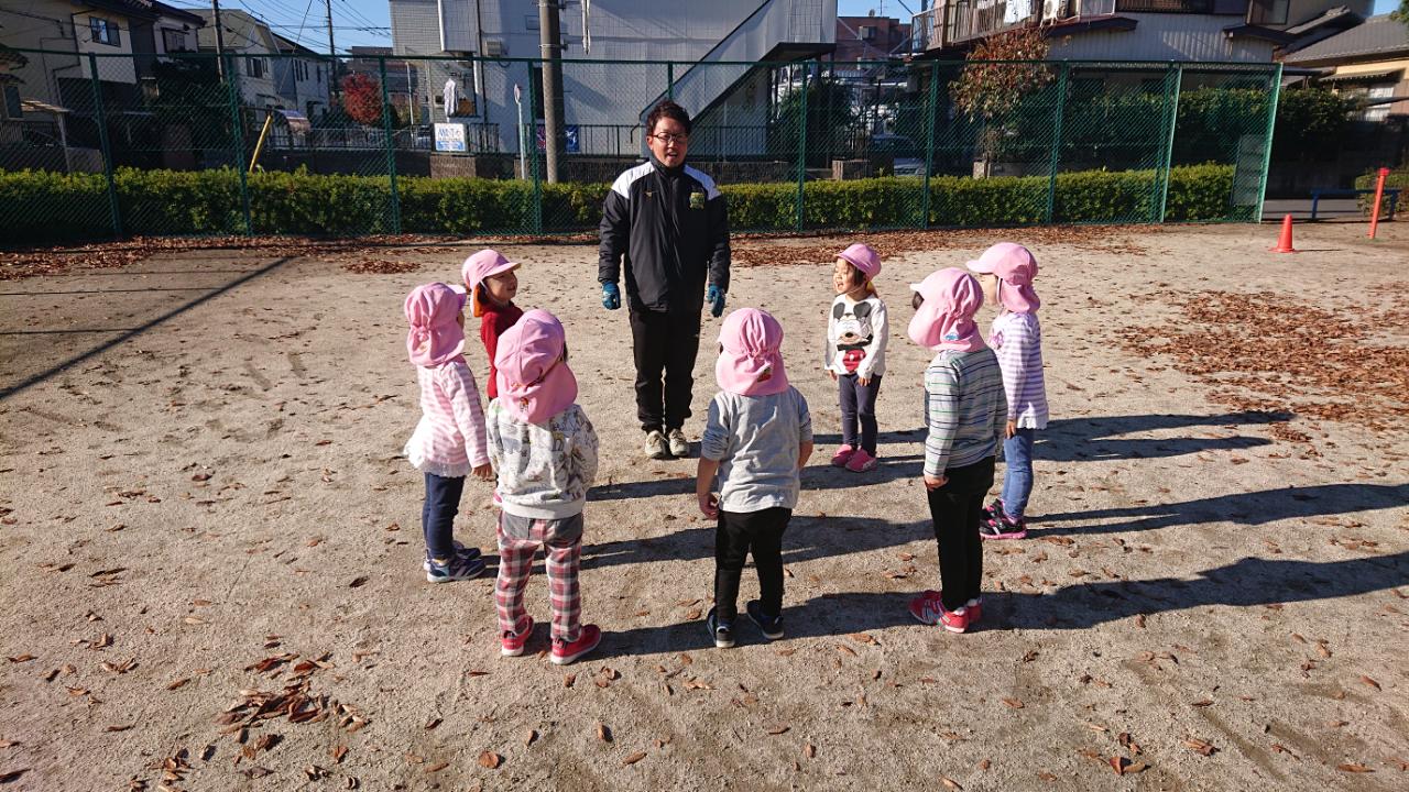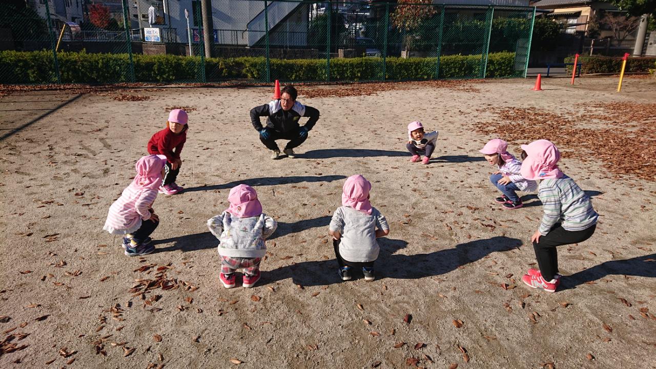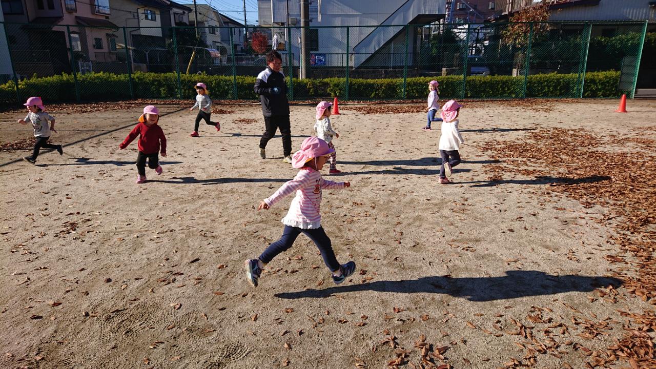 あいさつから元気に体操をやった後は走りながら笛の合図でコーチのマネをしたり、お山鬼ごっこを行いました!!