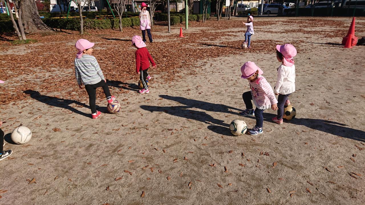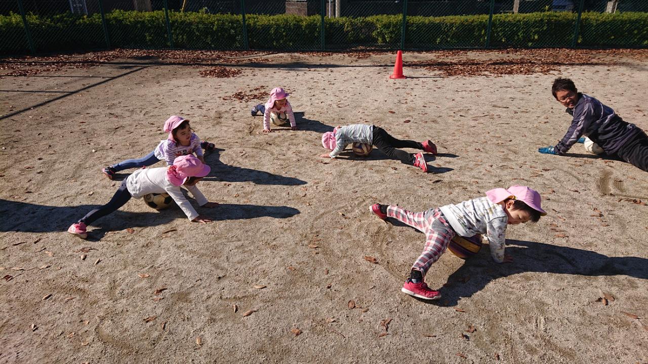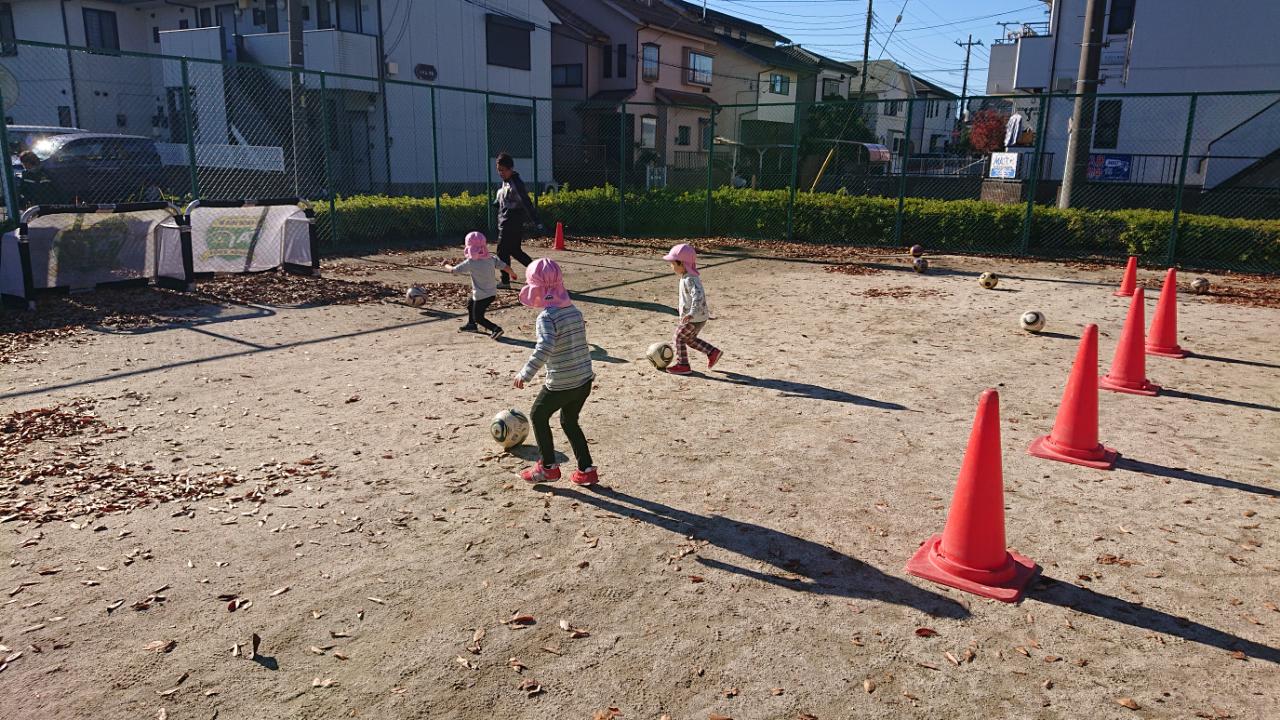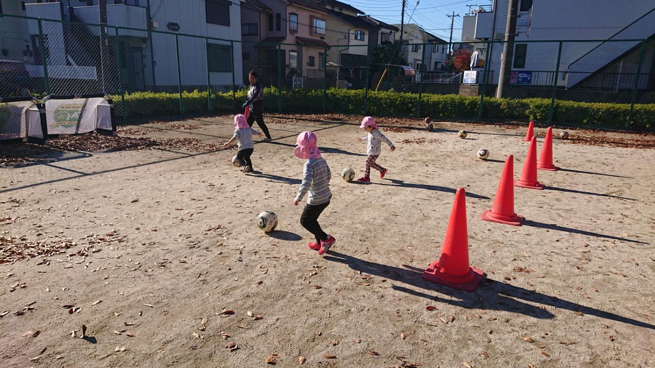 ドリブルは笛が鳴ったら、ボールと一緒に止まる・足以外の部分でボールを止めるなど足でもたくさんボールに触れながら、一生懸命頑張っていました(*^^)v